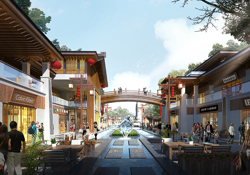? ? 文化商業(yè)街的設(shè)計頗具匠心,從入口處開始,至文化商業(yè)街出口處結(jié)束,整個用關(guān)羽輝煌起伏的一生為時間線進(jìn)行貫穿。如果說整條街區(qū)是關(guān)羽在世生而仁、仁而勇、勇而義、義而忠的再現(xiàn),那么從街區(qū)的出口處就是關(guān)羽侯而王、王而帝、帝而圣、圣而天文化升華的開始。讓體驗者通過關(guān)公精神,體驗現(xiàn)代旅游綜合商業(yè)區(qū),建設(shè)一個集餐飲休閑、旅游度假為一體的傳統(tǒng)古典園林式的商業(yè)綜合體。