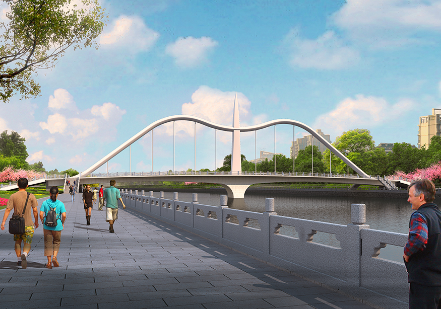 雄鷹展翅的墩梁下部造型,配以上部張力挺拔的弓弩,結(jié)構(gòu)造型新穎獨(dú)特,內(nèi)涵豐富,將蒙古族的文化元素融入其中;另外江南文化的元素可以在橋梁欄桿上加以體現(xiàn)。