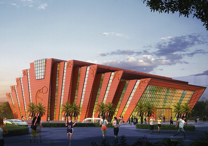 原學(xué)校顏色以灰白色為主要色調(diào),中學(xué)是一個年輕人集聚的場所是一群有朝氣,活潑的祖國未來的花朵。紅色代表著熱量、活力與意志力。因此體育館設(shè)計采用紅色作為主要色調(diào)。符合體育館的建筑性格。點(diǎn)綴整個校園,點(diǎn)燃學(xué)生的激情。
