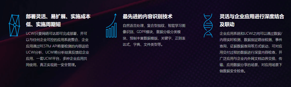 進(jìn)行深度整合,為企業(yè)提供專業(yè)的內(nèi)容安全防護(hù),實(shí)現(xiàn)DLP深度內(nèi)容管控與企業(yè)應(yīng)用系統(tǒng)數(shù)據(jù)安全的